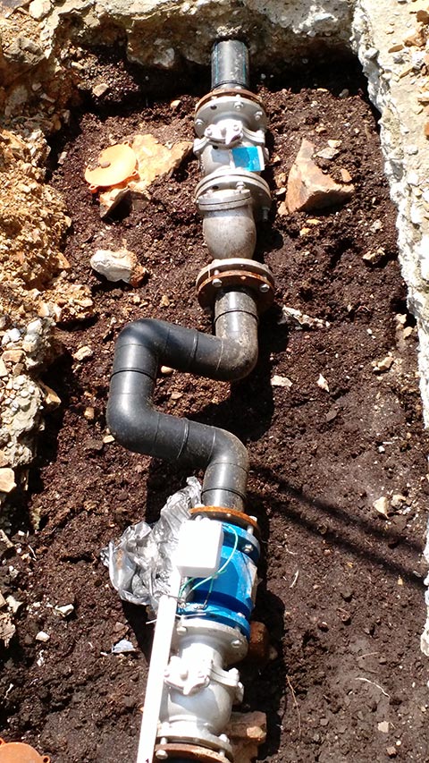 城鄉一體化供水計量電池供電電磁流量計安裝現場(chǎng)