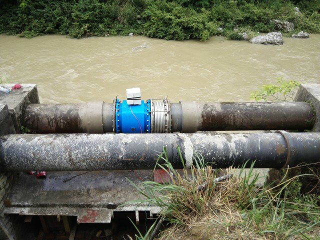 城鄉一體化供水計量電池供電電磁流量計安裝現場(chǎng)