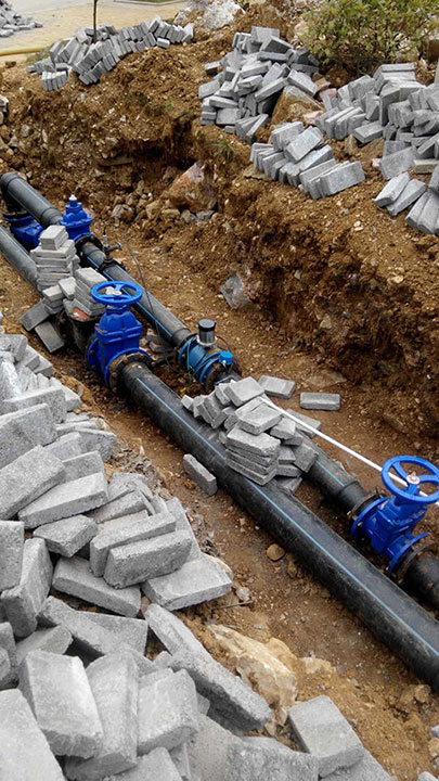 城鄉一體化供水計量電池供電電磁流量計安裝現場(chǎng)