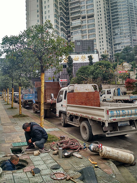 室外、井下污水測量電磁流量計安裝現場(chǎng)
