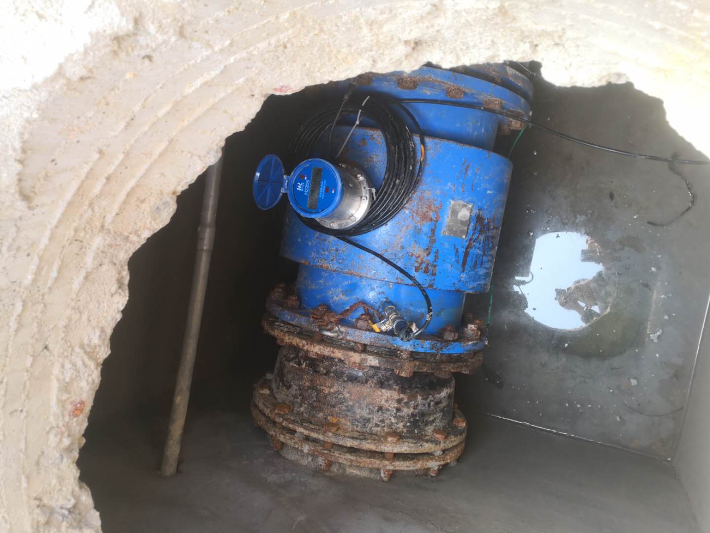 城鄉一體化供水計量電池供電電磁流量計安裝現場(chǎng)